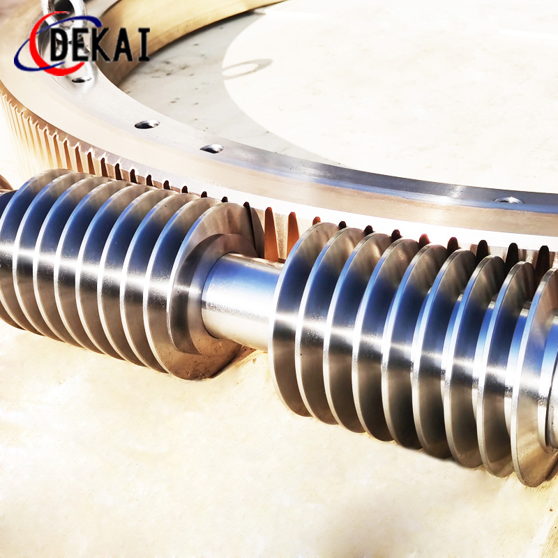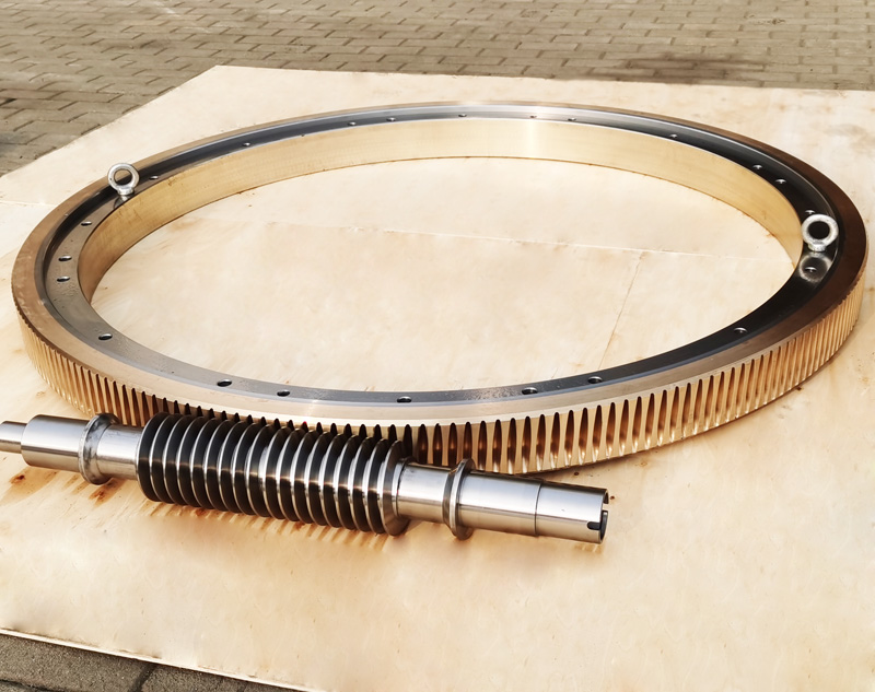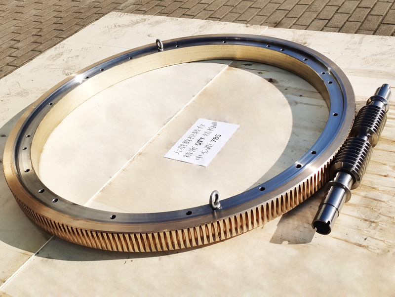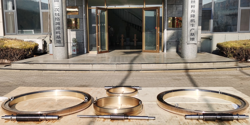 精密双导程蜗杆副的优点:分度精度高,侧隙可调整至0.01~0.03Mmm;齿面接触稳,不会改变中心距。调整标准,方便可靠。装配灵活,装配时,用调整环来获得合适的啮合侧隙。使用中如果因为磨损导致传动间隙增大,只要调整一下蜗杆的轴向位置,可以使蜗杆蜗轮传动副恢复到原来的精度,不需要更换新的蜗杆,蜗轮,比较实用。蜗杆材质采用40Cr,42CrMo、38CrMoAl合金钢。蜗杆采用锡青铜ZCuSn10Pb1离心浇铸,具有高强度耐磨性。